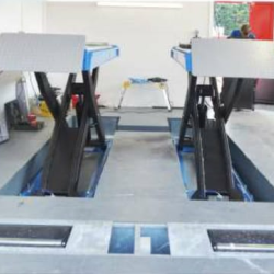 All the equipment we install at V-Tech comes with full DVSA approval. The lift is a European Scissor Lift, Electro Hydraulic model, built in Play Detectors and full safety features, including pressure safety valves and mechanical locking system. This is a very popular lift for MOT and ATL bay install installations, hard wearing and reliable with an additional 2 ton manual jacking beam, the lift also comes with radius plates built into the runners next to the play detectors. Other features include a wired remote control which doubles as a øashlight for checking the underside of the vehicle.